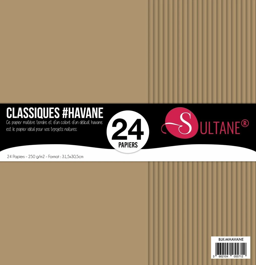 Le papier sultane est un papier lisse capable de se plier sans se casser. Il est un bon allié pour réaliser des albums et d’autres activités de carterie et scrapbooking. Son grammage en fait un papier de haute qualité. À noter également que sa matière rend le tamponnage vraiment facile, et vous donne donc de grandes possibilités de personnalisation pour vos loisirs créatifs. Les papiers matières de la marque sultane, utilisés depuis plus de 13 ans sont 100% français. Ces papiers scrapbooking sont fabriqués dans une imprimerie imprimvert, ce qui assure une production écologique. Ces papiers matières ont été travaillés afin qu’ils répondent à toutes vos utilisations en carterie et scrapbooking. 24 papiers sultane couleur havane teinté dans la masse, densité 300 g/m2. Dimensions : 31,5 x 30,5 cm.