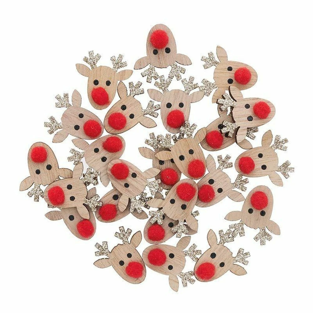 72 Confettis Rennes En Bois Avec Paillettes Dorées 2,3 Cm