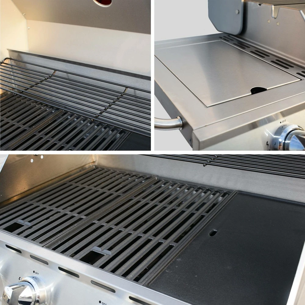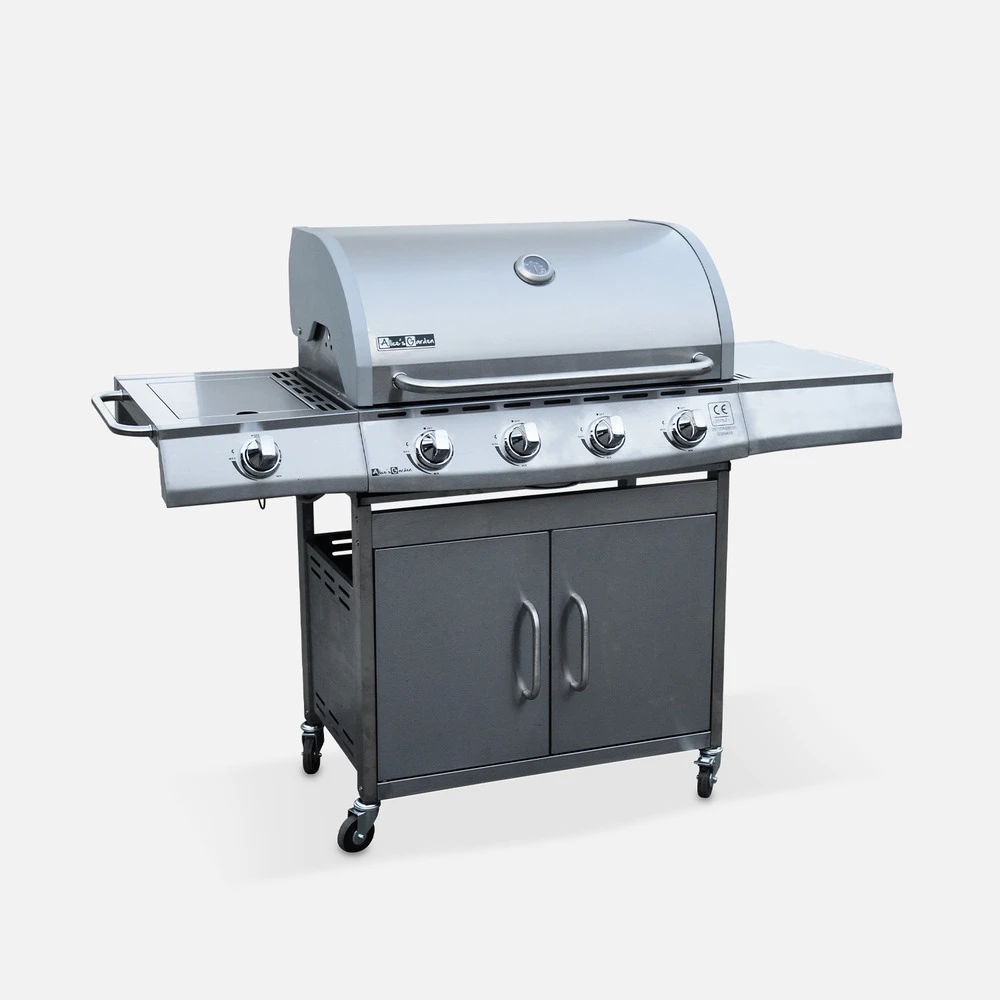 Barbecue Gaz Inox 17kw – Richelieu Inox – Barbecue 5 Brûleurs Dont 1 Feu Latéral. Côté Grill Et Côté Plancha