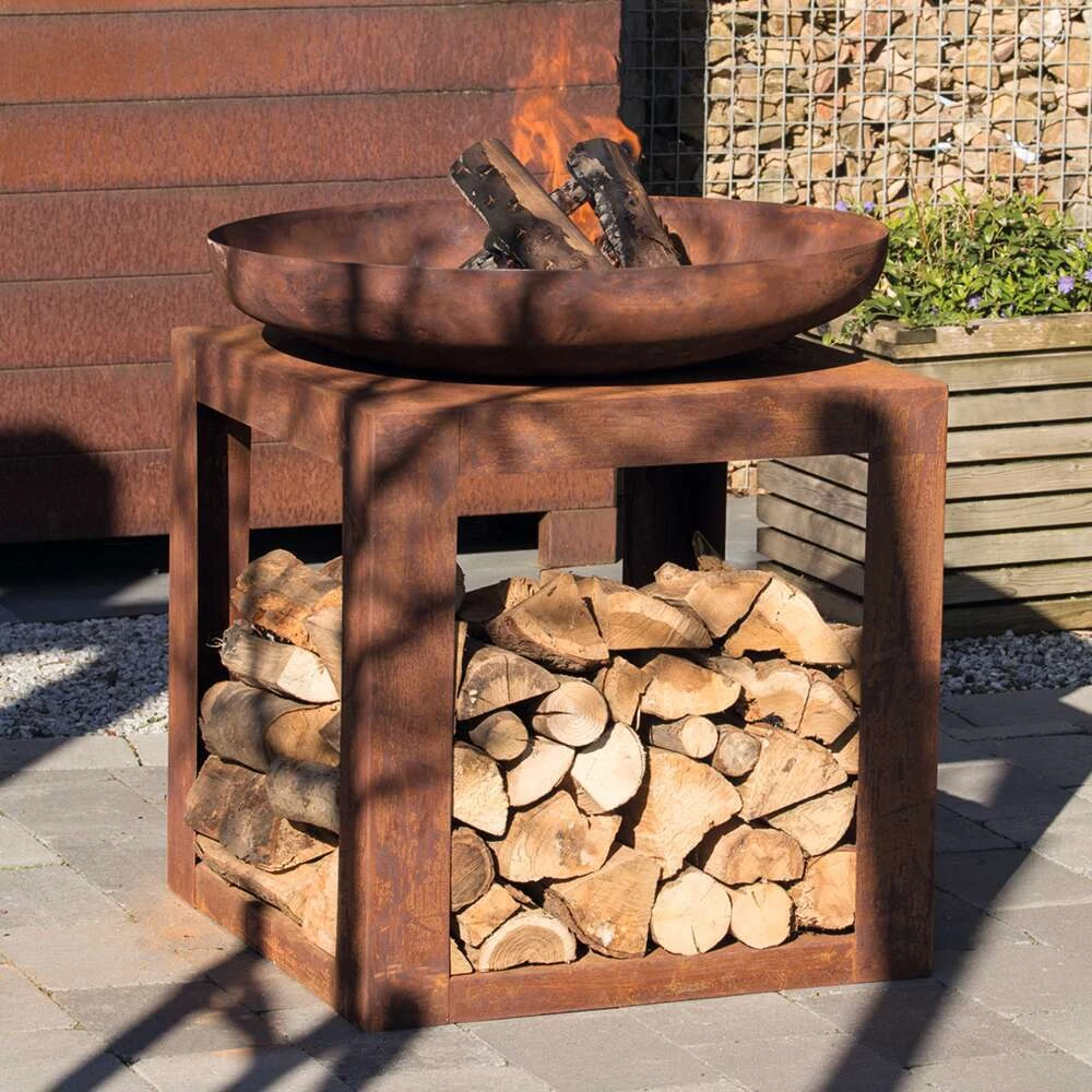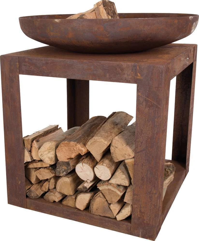 Comme nous, vous aserez séduits par ce braséro très pratique avec son espace pour ranger votre bois de chauffage. Brasero au bois Selki Industrial en acier – 80x80x85 cm.