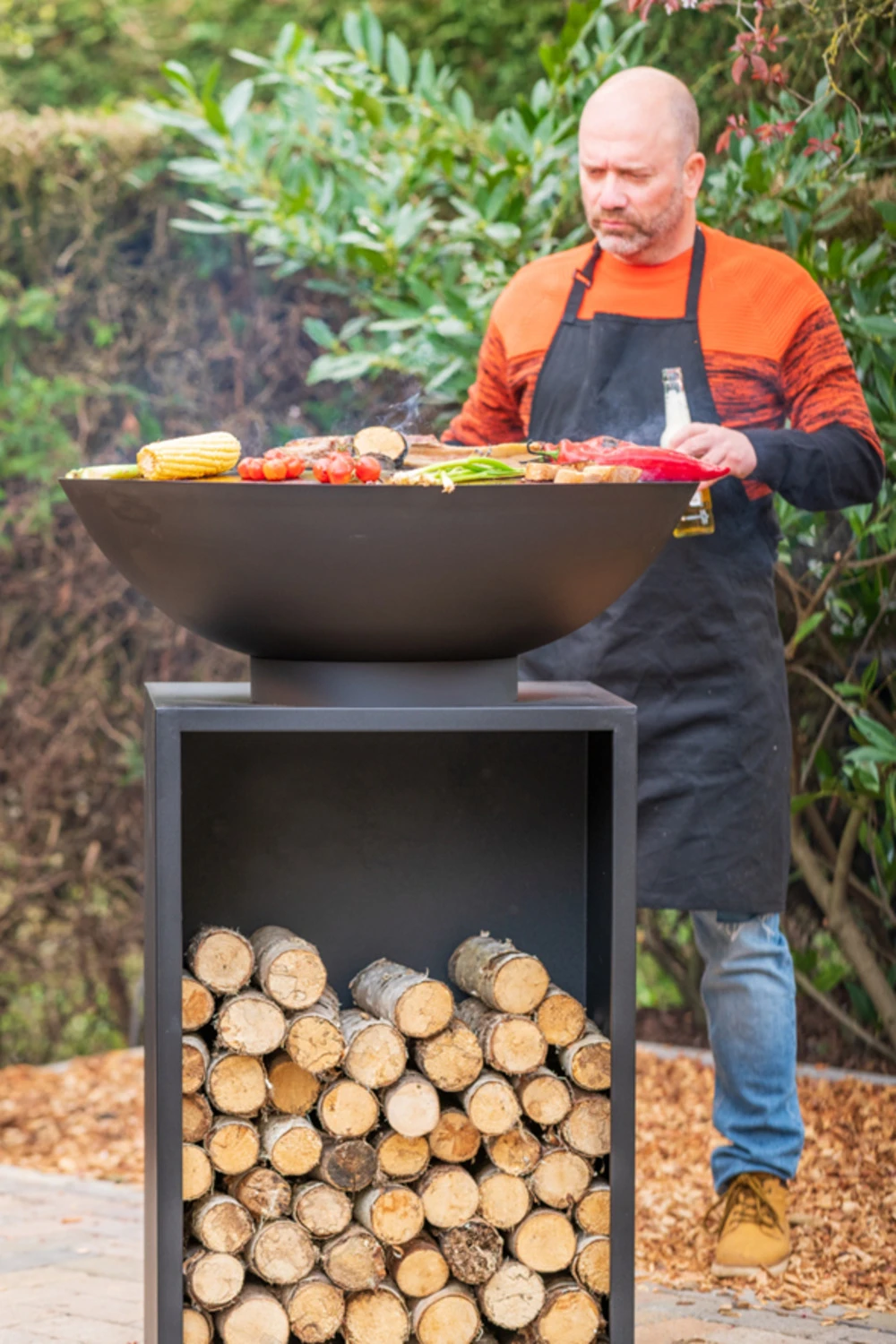 Braséro de cuisson avec réserve bois + housse protection,