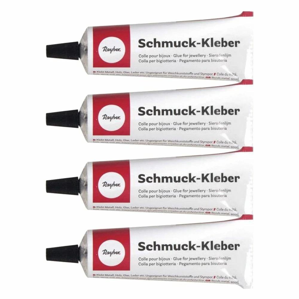 Colle pour bijoux rayher 4 tubes de 27 g. Colle particulièrement forte, idéale pour coller du tissus, cuir, cabochons, pierres décoratives, verre. S’emploie sur le papier cartonné, le polystyrène, le bois, le métal, le plastique, la céramique.