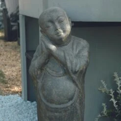 Statue Jardin Moine Bouddhiste Assis (grand Format) – Gris 30 Cm