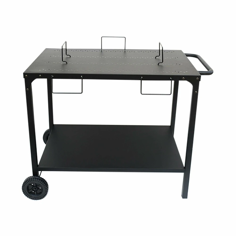 Desserte Extérieure Noire En Acier Modulable Pour Plancha Avec Deux Roues