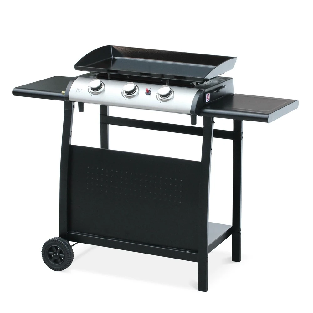 Desserte Pour Plancha Au Gaz – Chariot Porthos 3 Brûleurs – Chariot Barbecue Noir. Cuisine Extérieure. Roulettes