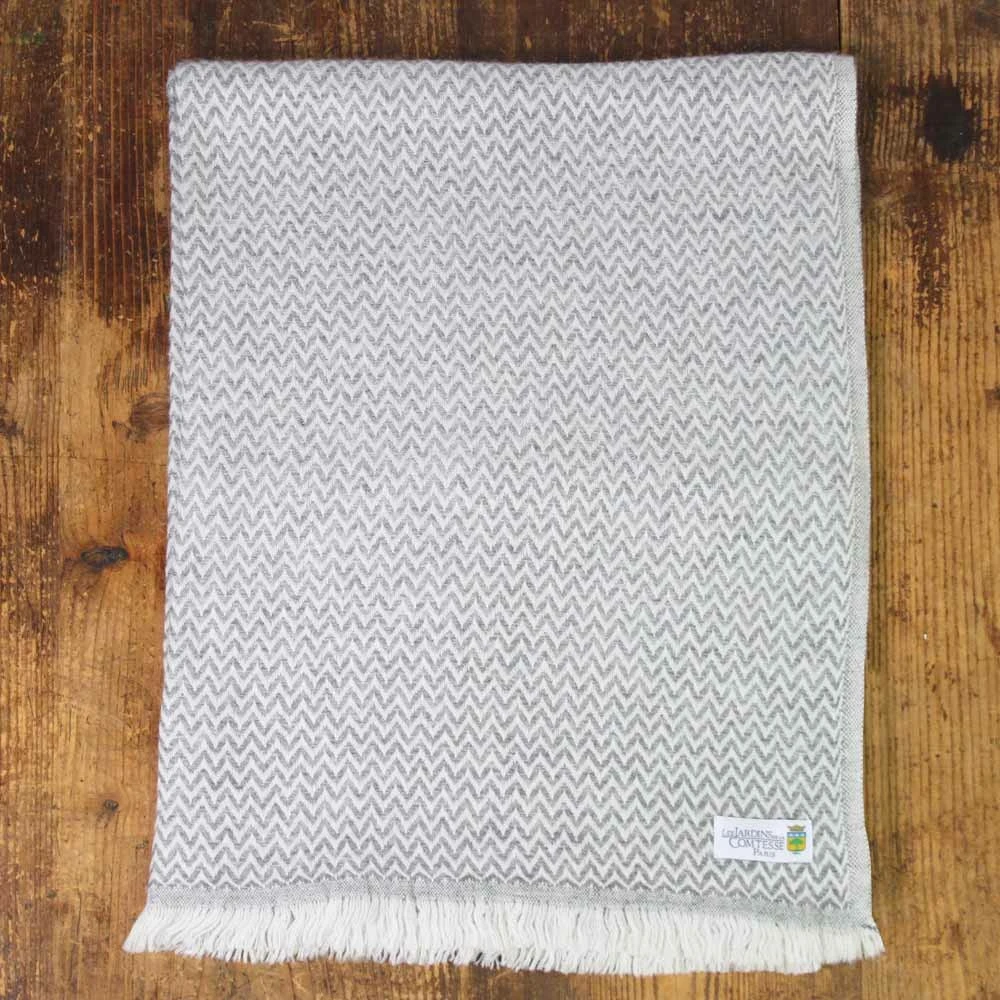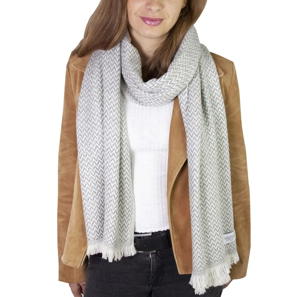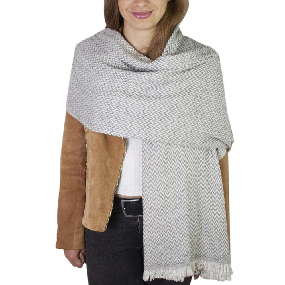 Chã¢le cachemire et laine du nã©pal gris souris. Ces fibres naturelles sont produites grã¢ce ã de petites chã¨vres appelã©es « changra » qui vivent ã 4200m d’altitudes dans les montagnes au nã©pal. Tissã© par des artisans sur des mã©tiers ã tisser ancestraux, ce chã¢le ã©pais et moelleux gardera vos ã©paules et votre cou au chaud pour les basses tempã©ratures. Soigneusement sã©lectionnã© pour sa doucoeur, le cachemire qui compose cette ã©charpe est trã¨s agrã©able ã porter. Grã¢ce ã sa couleur grise, cet accessoire complã¨tera parfaitement votre garde-robe. Cette ã©tole est aussi disponible dans d’autres couleurs : ã©tole / pashmina beige amande, ã©tole / pashmina gris argentã©, ã©tole / pashmina gris anthracite, ã©tole / pashmina marron glacã©. Envie d’une ã©charpe traditionnelle cliquez sur nos ã©charpes en cachemire et laine. Composition : 20% cachemire – 80% laine vierge. Origine : cachemire du nã©pal provenant de la chã¨vre « changra » / laine vierge. Coloris : gris souris / couleur naturel de la chã¨vre. Finition : petites franges droites. Taille : grande etole (70 x 210 cm). Poids : 275 grammes. Pashmina en cachemire et laine fabriquã©es ã la main au nã©pal