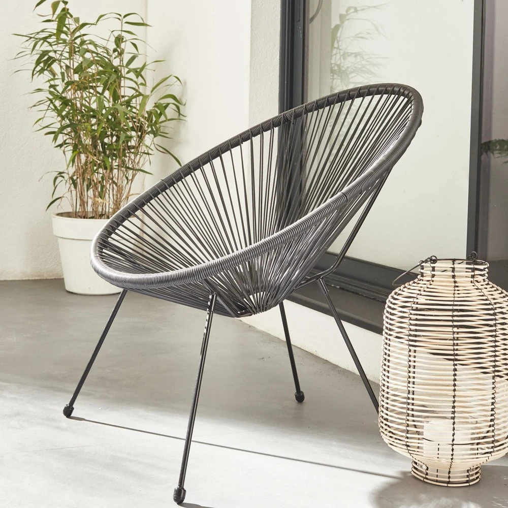 Fauteuil Acapulco Forme D’oeuf – Noir – Fauteuil 4 Pieds Design Rétro. Cordage Plastique. Intérieur / Extérieur