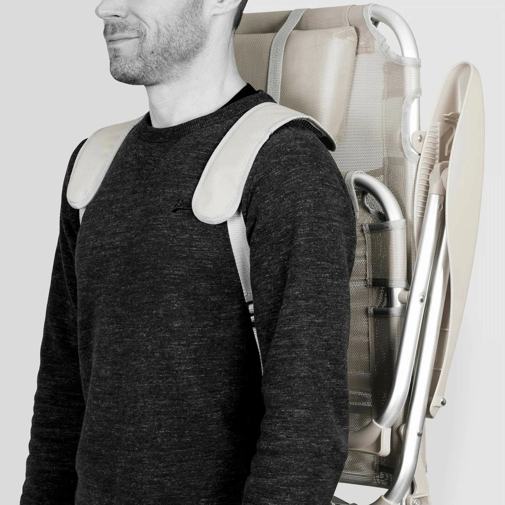ce fauteuil de plage malin vous accompagne pour toutes vos sorties à la mer. Portez-le en sac à dos grâce à ses 2 bretelles rembourrées intégrées, dépliez-le et installez-vous confortablement. La chaise de plage possède un dossier inclinable en 4 positions sur un simple mouvement des accoudoirs. Sa toile respirante en textilène et son coussin repose-tête la rendent très agréable. Pratique, elle comprend une pochette de rangement à l’arrière du dossier et une poche secrète dans le repose-tête pour glisser vos objets de valeur. La toile résiste aux agressions extérieures (eau, sel, sable) et conserve l’éclat de sa couleur dans le temps. Sa structure en aluminium est solide et durable. Lorsqu’il est plié, dimensions du fauteuil : hauteur 69 x largeur 58 x épaisseur 11cm. Poids du fauteuil à l’unité : 3,2kg. La chaise de plage se décline en 5 couleurs : bleu, bleu clair, corail, gris, rose