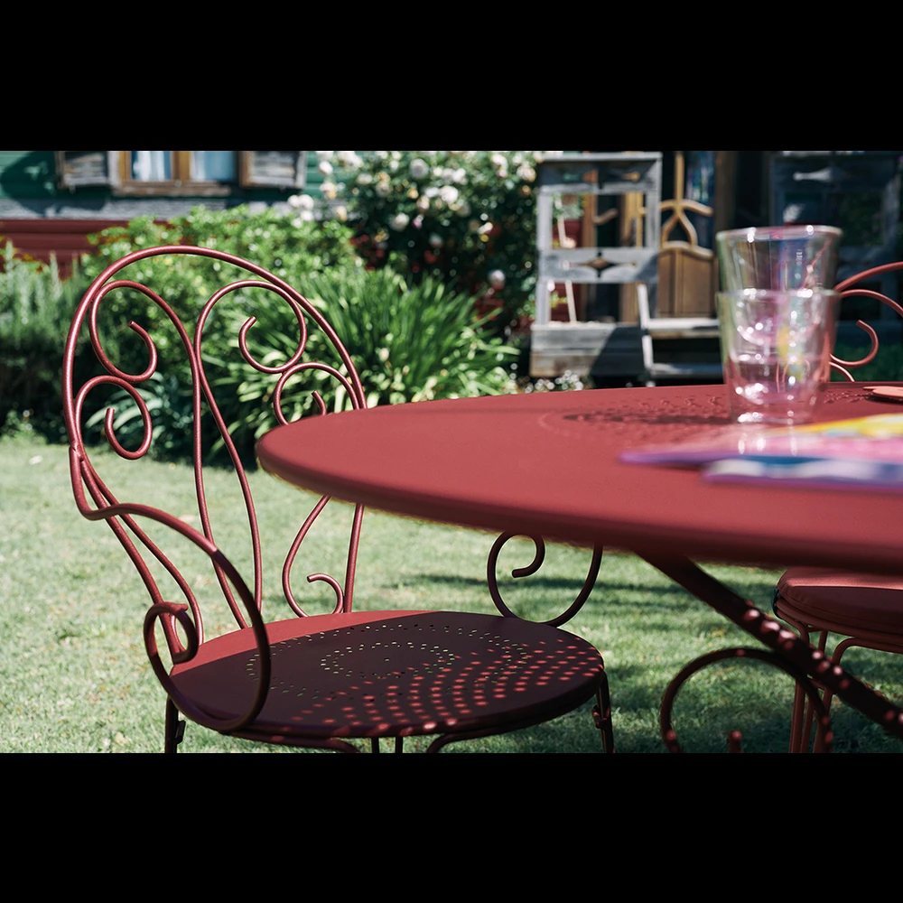 Avec ses arabesques, ses accoudoirs et son assise large et confortable, ce fauteuil Montmartre à la forme intemporelle trouvera sa place dans tous les aménagements extérieurs. Structure en acier, assise en tôle perforée, traitement haute protection pour usage extérieur et peinture en poudre anti U.V, il cumule de nombreux atouts. Empilable, il existe en plusieurs coloris.
