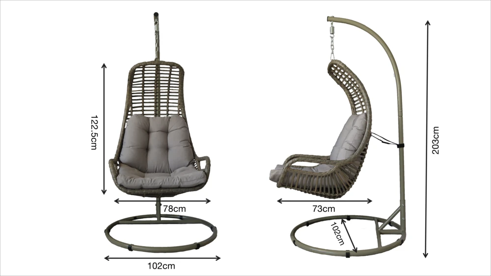 sécurité: la base supporte la chaise suspendue, la capacité maximale peut aller jusqu’à 120 kg.