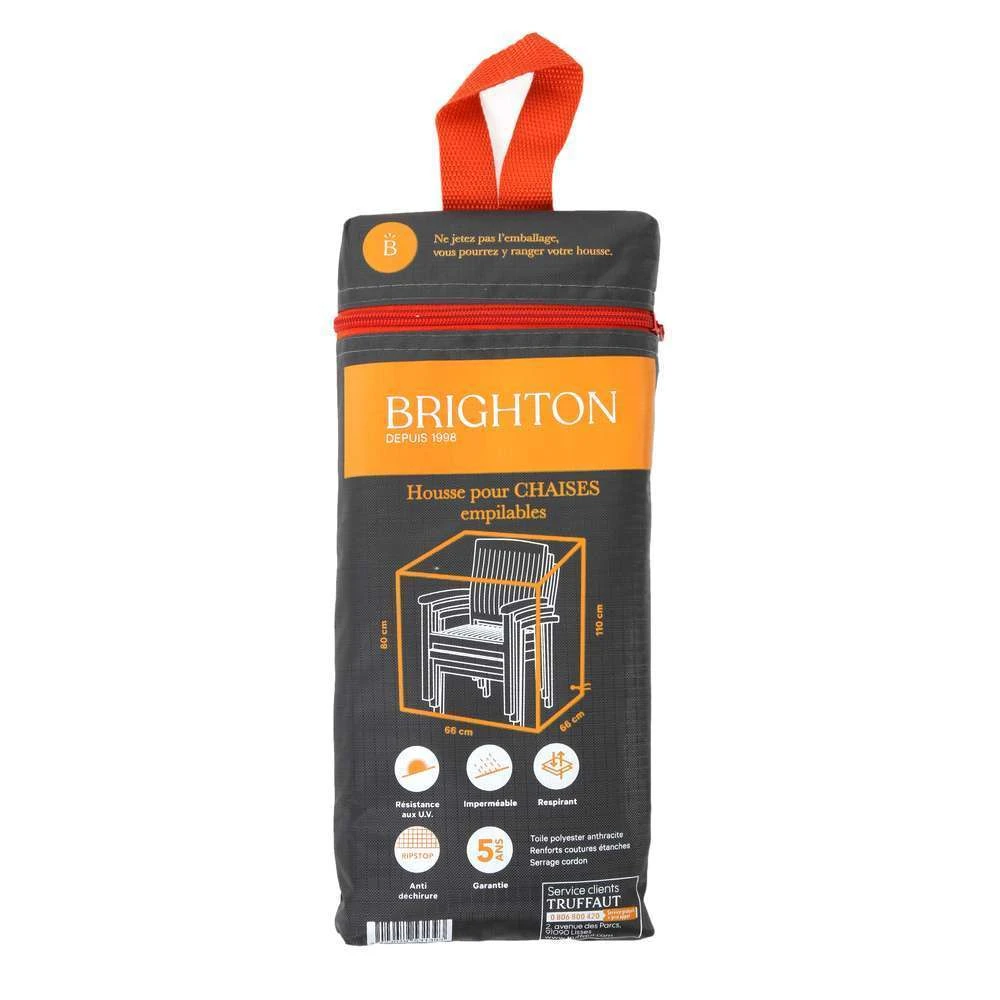 Les housses de protection Brighton sont conçues pour ĂŞtre pratiques et faciles d’utilisation. Leur toile est fabriquĂ©e partir d’un tissu rĂ©sistant aux rayons UV, impermĂ©able, respirant et anti-dĂ©chirures. Elles se distinguent par leur excellent rapport qualitĂ© prix pour vous permettre de doter vos Ă©quipements de jardin de la meilleure solution de rangement et de protection possible. Housse de protection pour chaises empilables.