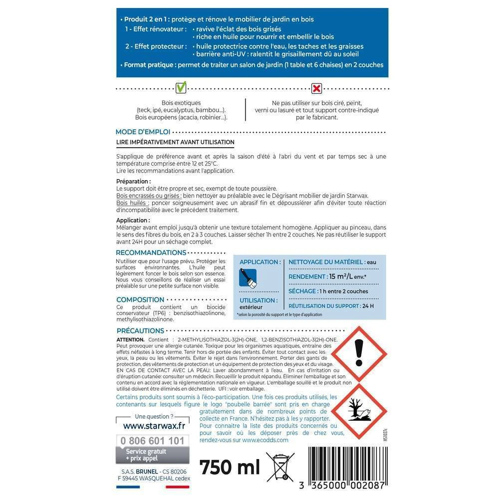 Votre mobilier de jardin en bois a pris avec le temps une patine que vous n’aimez pas? La teinte qui vous avait séduit quand vous aviez choisi votre mobilier a laissé place à un coloris terne et grisonnant? Optez pour cette huile rénovatrice spéciale bois grisé. Sa teinte teck réchauffera le coloris vieillissant.