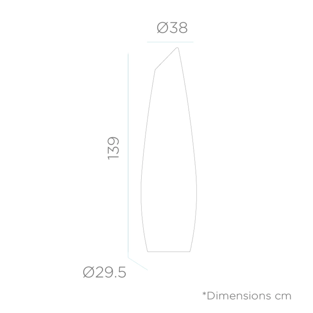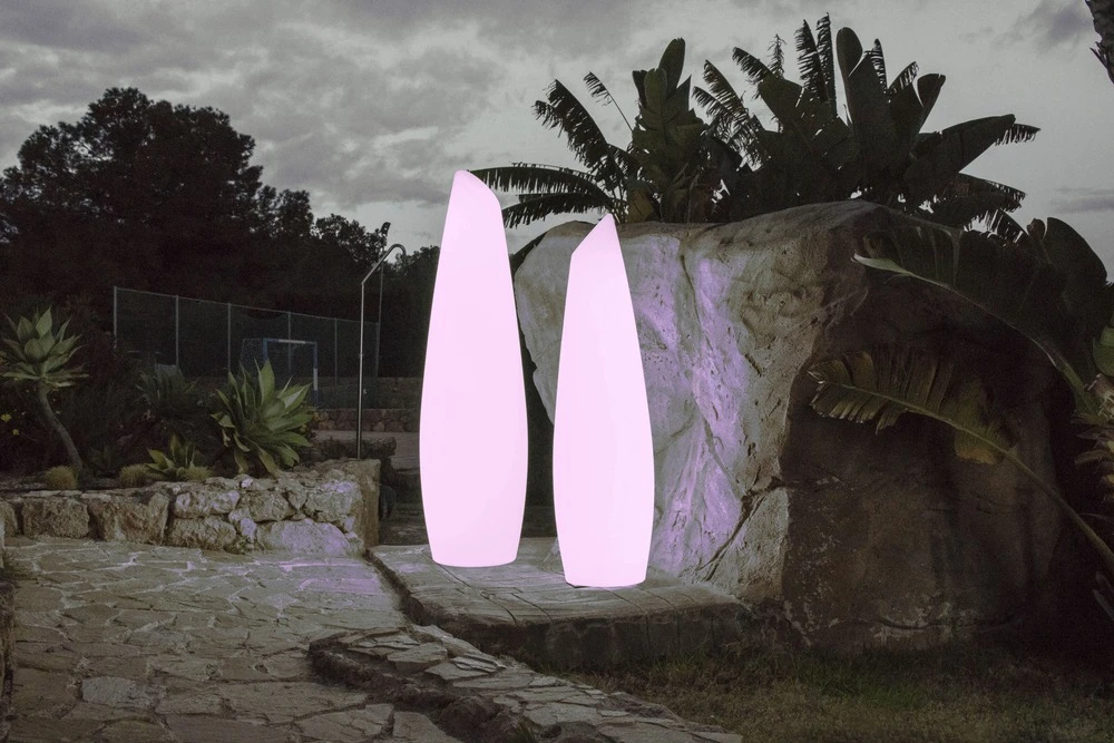 le lampadaire fredo 140 est un lampadaire au design moderne et graphique adapté aux espaces extérieurs, fabriquée en polyéthylène.