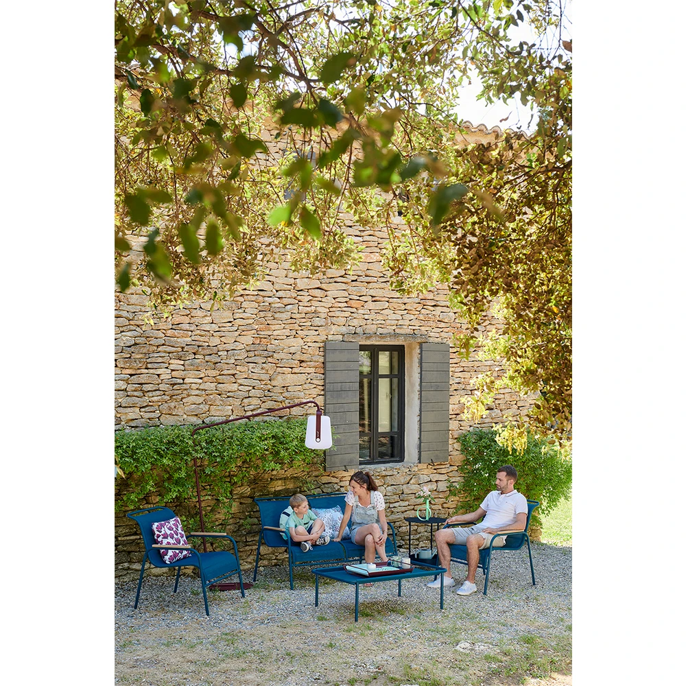 Cette lampe nomade peut vous suivre partout dans votre jardin ou s’installer sur l’un des deux pieds en métal conçus pour l’accueillir.