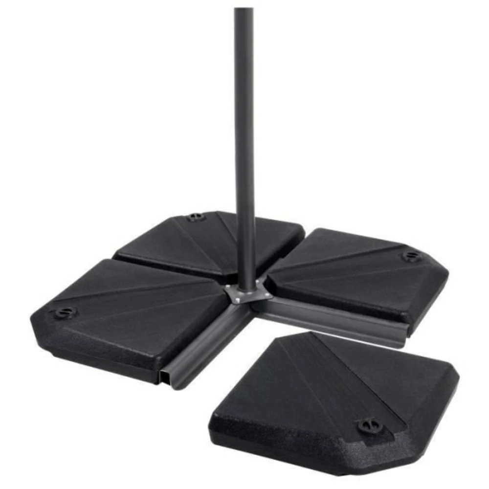 Lest a remplir pour mât déporté – permet de maintenir de façon sûr le mât de votre parasol déporté – traité uv – 16kg remplis d’eau – 25kg remplis de sable – dimensions : 49x49x8,7cm – coloris : gris anthracite. Attention : produit vendu a l’unité et non en lot de 4.