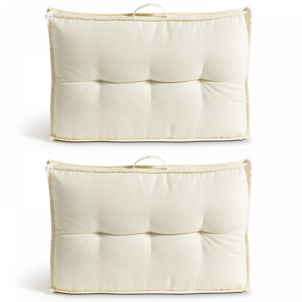 Lot 2 Coussins Palette Dossier Polyester Blanc 60x40x12 Cm