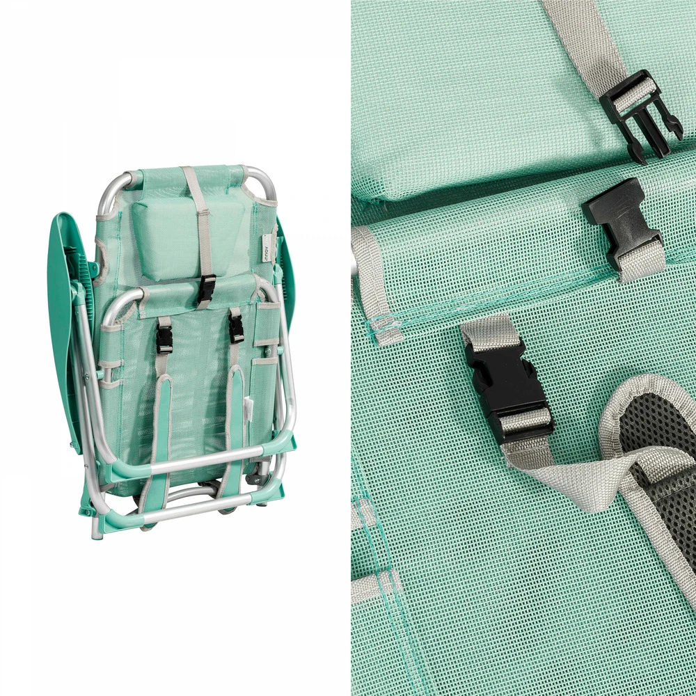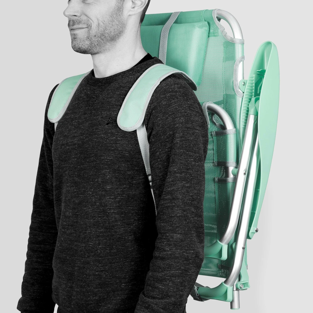 ces 2 chaises de plage sont des produits malins. Elles intègrent 2 bretelles rembourrées pour se porter en sac à dos, une grande poche à l’arrière du dossier pour ranger les magazines et une poche secrète dans le repose-tête pour cacher les objets de valeur. En actionnant les accoudoirs, le dossier s’incline en 4 positions, d’assis à allongé. La toile en textilène respirante limite la transpiration corporelle. Elle résiste aux intempéries, aux variations de températures, et ne change pas de couleur au fil du temps. La structure est en aluminium, une matière solide et durable. Les 2 chaises de plage sont légères, pliantes et peu encombrantes. Plusieurs couleurs sont disponibles.