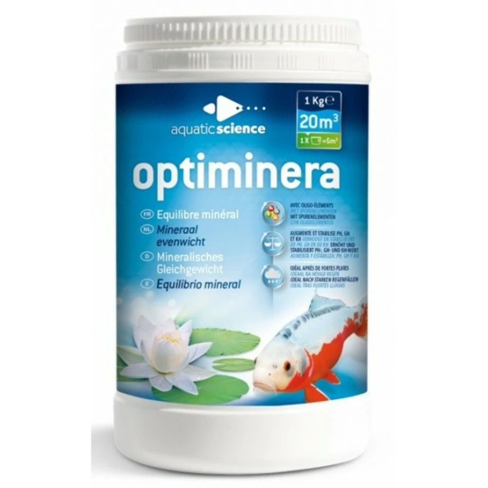 les minéraux naturels d’optiminera optimisent le ph et la dureté de manière durable. Optiminera aide à éclaircir l’eau, diminue les phosphates, accélère la réduction des vases et aide à la stabilisation du bassin de jardin (prévention des maladies de poissons).