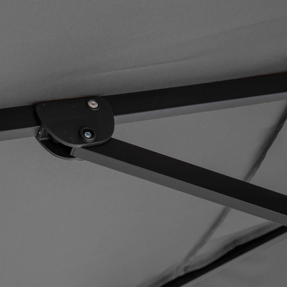 compagnon idéal de vos repas et moments détente en plein air, le parasol déporté rotatif caserta fournit une protection maximale contre les rayons du soleil, et ce toute la journée durant grâce à sa structure articulée. Son mât central est rotatif à 360° et son mât déporté est inclinable : il peut donc être aisément et rapidement orienté de façon à en optimiser la surface d’ombrage. La toile 100% polyester se déploie et se replie facilement sur action d’une poignée, et est protégée anti-uv et imperméabilisée avec une enduction pvc. Celle-ci mesure 4 x 3 m et fournit jusqu’à 12 m² de surface d’ombrage. Le parasol rectangulaire déporté ne demande aucun entretien, sa structure en aluminium étant résistante à la rouille et aux intempéries. La notice et l’outillage pour l’assemblage sont inclus ainsi que 4 dalles lestées pour une mise en place immédiate en toute sécurité pour votre extérieur.