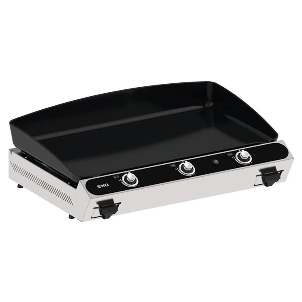 Plancha chambord 75 au gaz à poser, largeur 75 cm3 brûleurs avec sécurité gaz 7,5 kw – allumage électroniqueplancha en fonte émailléee multicouche – bâti inox menagerbac récupérateur de graisse en inox
