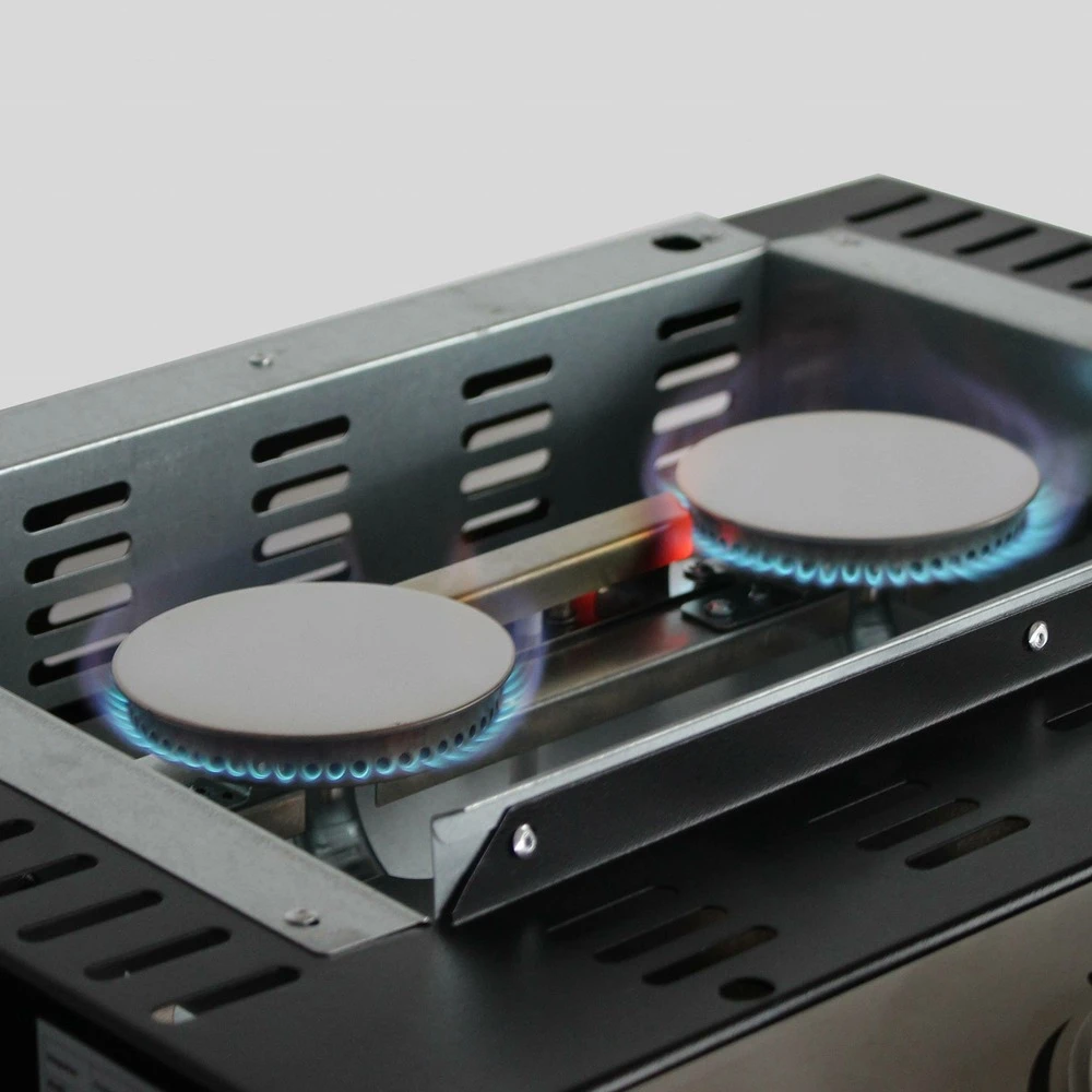 Plancha Au Gaz 2 Brûleurs Sur Chariot – Porthos – 5kw. Plancha à Gaz Avec Desserte . Cuisine Extérieure. Plaque émaillée. Inox.