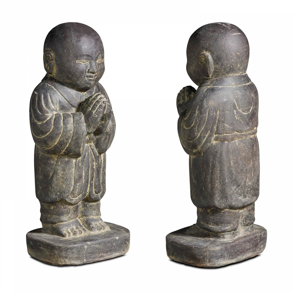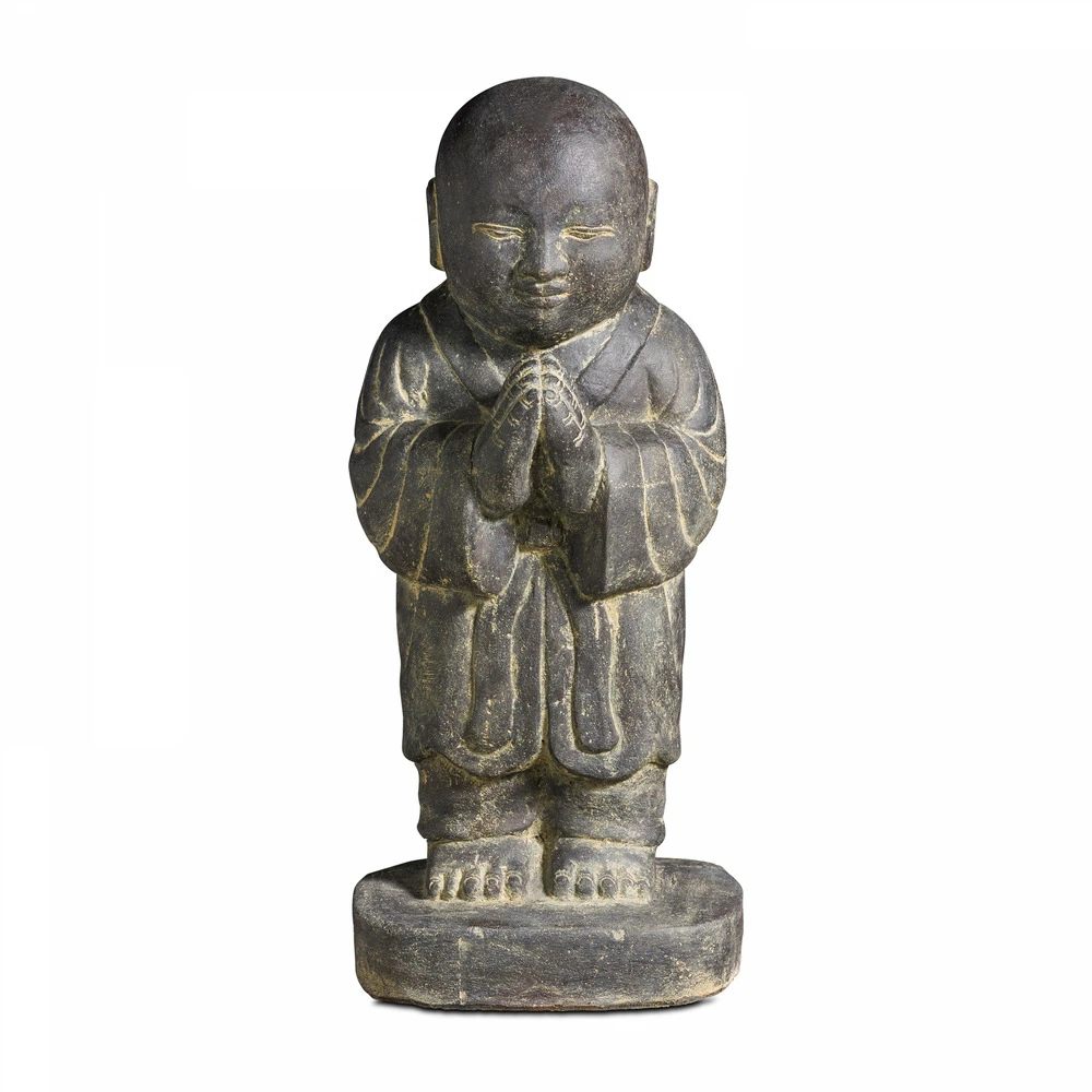 Statue De Jardin Moine Debout En Pierre Naturelle Gris