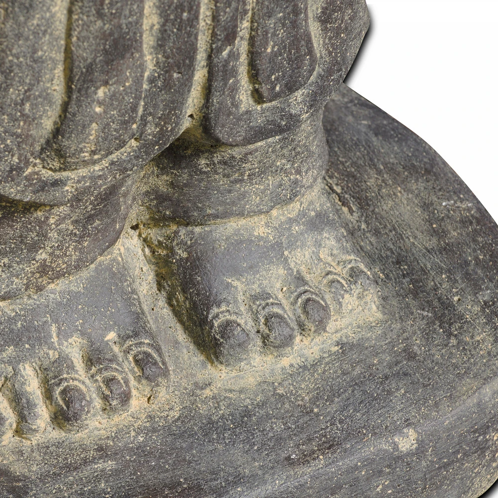 statue décorative en pierre pour jardin, représentant un moine bouddhiste en train de se recueillir. La statue en pierre naturelle est un accessoire déco pour la maison ou le jardin, elle dégage une atmosphère apaisante et zen. Chaque pièce est unique : d’abord moulée en pierre reconstituée, elle est ensuite pressée à la main par un sculpteur professionnel, avec une finition patinée et antique. Chaque statue de moine en pierre possède donc ses propres variations de dimensions et de couleurs. La statue de jardin en pierre naturelle résiste sans problèmes aux variations de températures extrêmes et aux intempéries : elle peut être installée sans crainte dans le jardin ou sur la terrasse, été comme hiver. La statue de moine debout en pierre naturelle mesure 60 cm de hauteur et pèse environ 18,5 kg. Elle ne demande aucun traitement ni entretien.