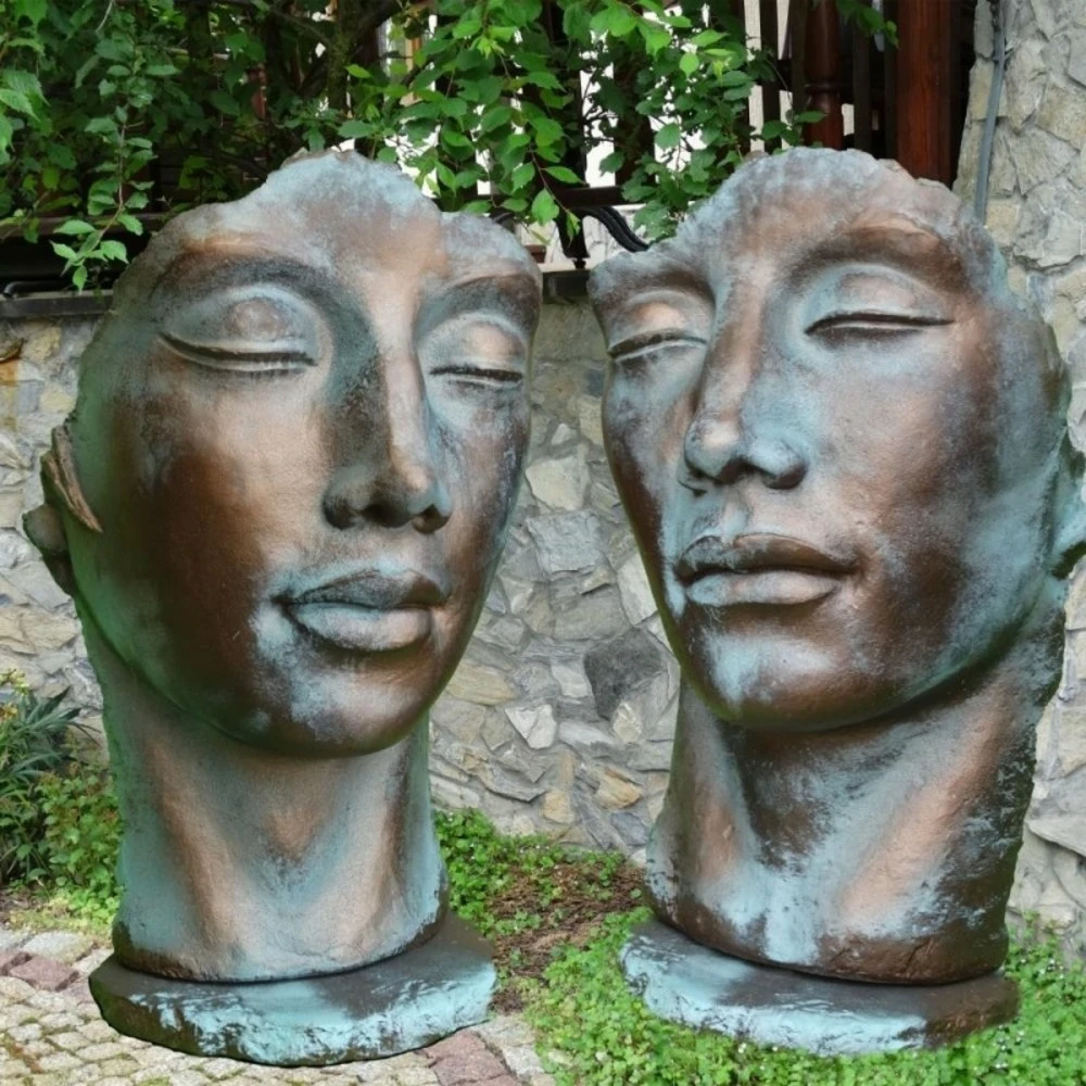nous proposons cet objet décoratif en 3 finitions : pierre, demi-rouille et bronze. Retrouvez sur notre site jardinex toute la collection des statues extérieures visage : petits et grands modèles, homme et femme.