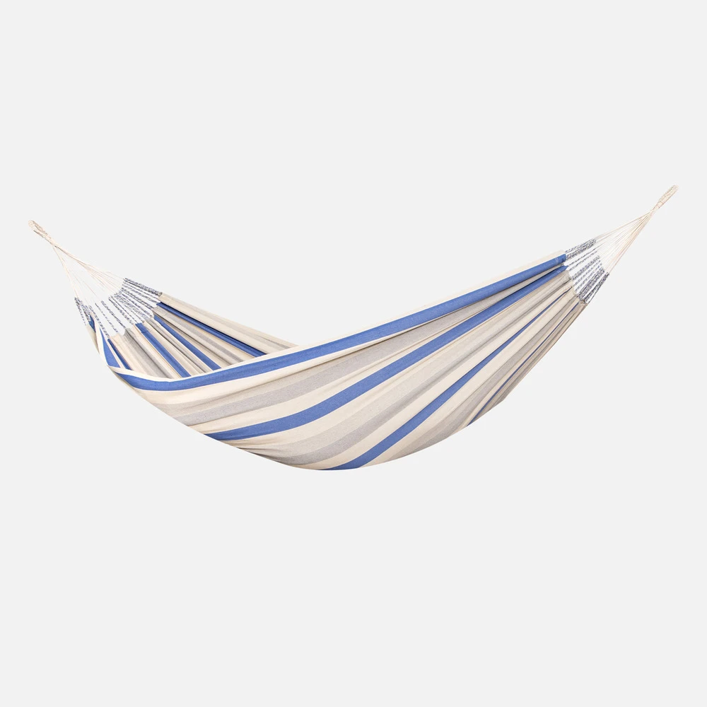 Toile De Hamac Rayée – Bleu Turquoise / Gris Clair / écru. 1 Personne. 100% Polycoton. 240x160cm
