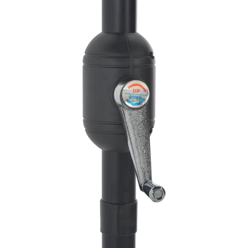 Cet élégant parasol de balcon est parfait pour créer de l’ombre et vous protéger des rayons uv nocifs. Fabriquée en polyester anti-uv et anti-décoloration, la couverture de parasol vous offre une protection optimale contre le soleil et est facile à nettoyer. Avec un diamètre de mât de 38 mm, il pourrait être monté sur le support ou au milieu de tables avec trou. Sa forme demi-ronde ajoute également au charme unique du parasol. Le mât en aluminium résistant, ainsi que les 5 nervures en acier robustes, rendent le parasol très stable et durable. Le parasol de jardin peut être facilement ouvert et fermé grâce au mécanisme à manivelle. L’article est facile à assembler. Veuillez noter que le support de parasol n’est pas inclus dans la livraison. Nous recommandons de traiter le tissu du parasol avec un spray imperméabilisant s’il est soumis à des fortes précipitations.