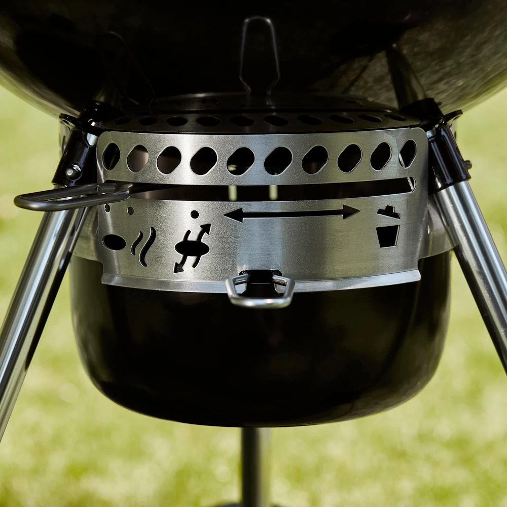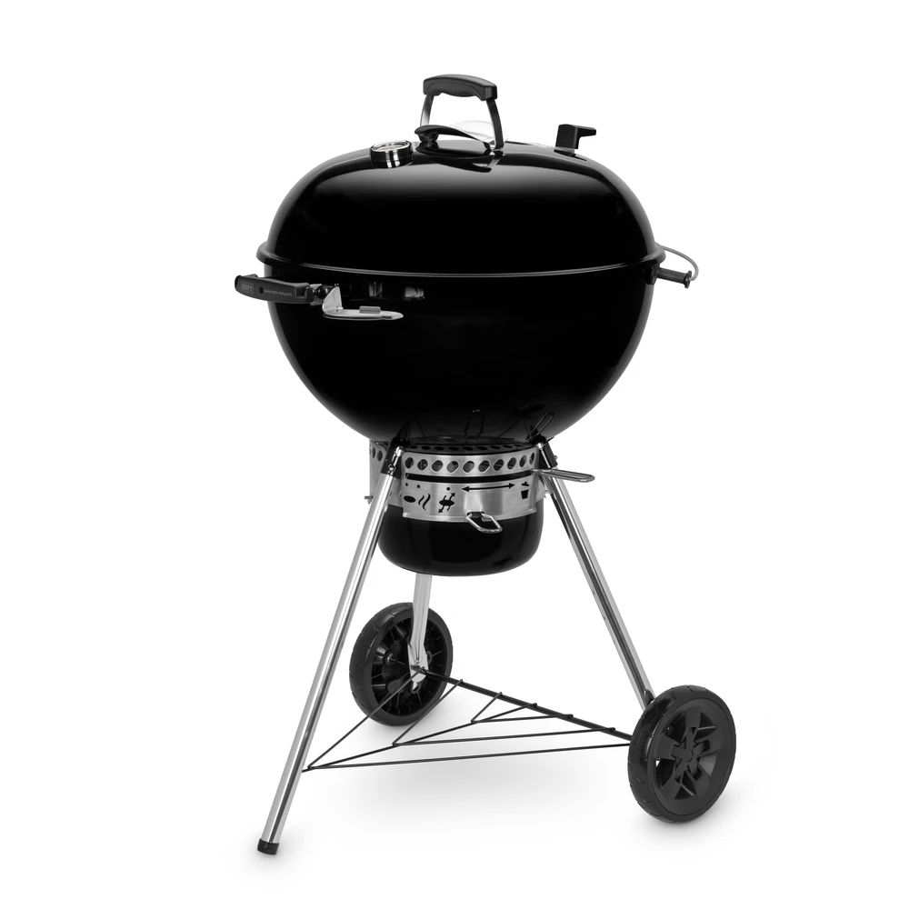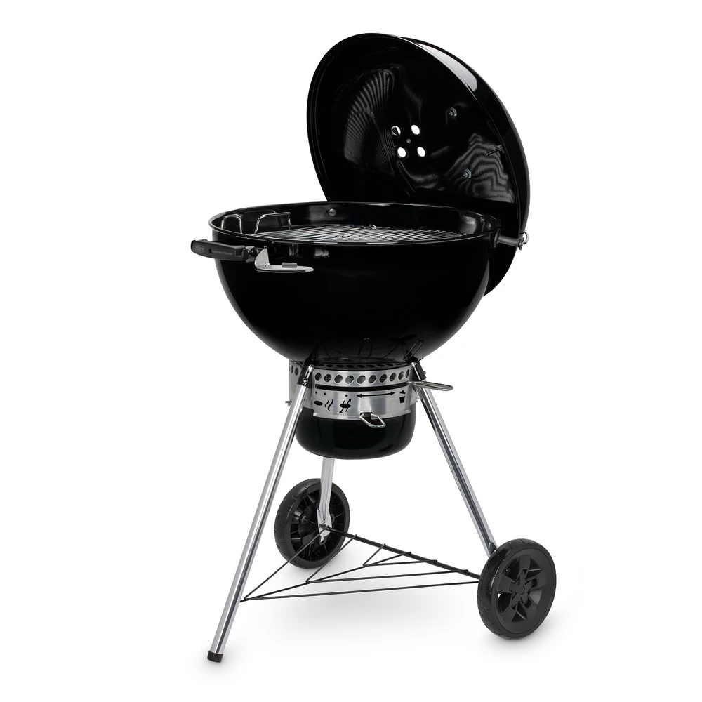 C’est le barbecue authentique et design de Weber ! Le Barbecue à charbon de bois Master touch GBS E-5755 est le barbecue des nostalgiques des grillades au feu de bois. Le barbecue authentique des puristes. Cuve et couvercle en acier émaillé. Grille de cuisson en inox Gourmet BBQ System articulée pour ajouter facilement du combustible lors de la cuisson. Le thermomètre intégré au couvercle garantit une excellente cuisson. Clapet d’aération en aluminium pour une bonne circulation d’air avec poignée à isolation thermique. Roues en plastique Thermodurci résistant aux intempéries. Crochets porte-ustensiles intégrés à la poignée de la cuve. Système de nettoyage One-Touch en acier inoxydable (pour vider facilement les cendres et régler la température) avec cendrier amovible. Le système d’aération permet de faire du fumage et des cuissons basses températures. Porte-couvercle intégré pour maintenir le couvercle lors de la cuisson. Bol doseur de briquettes : permet de doser parfaitement les briquettes. Plaques de cuisson plancha vendues séparément. Dimensions (l x h x p) : 60 x 107 x 72cm – Poids : 18kg – Couleur : noir.